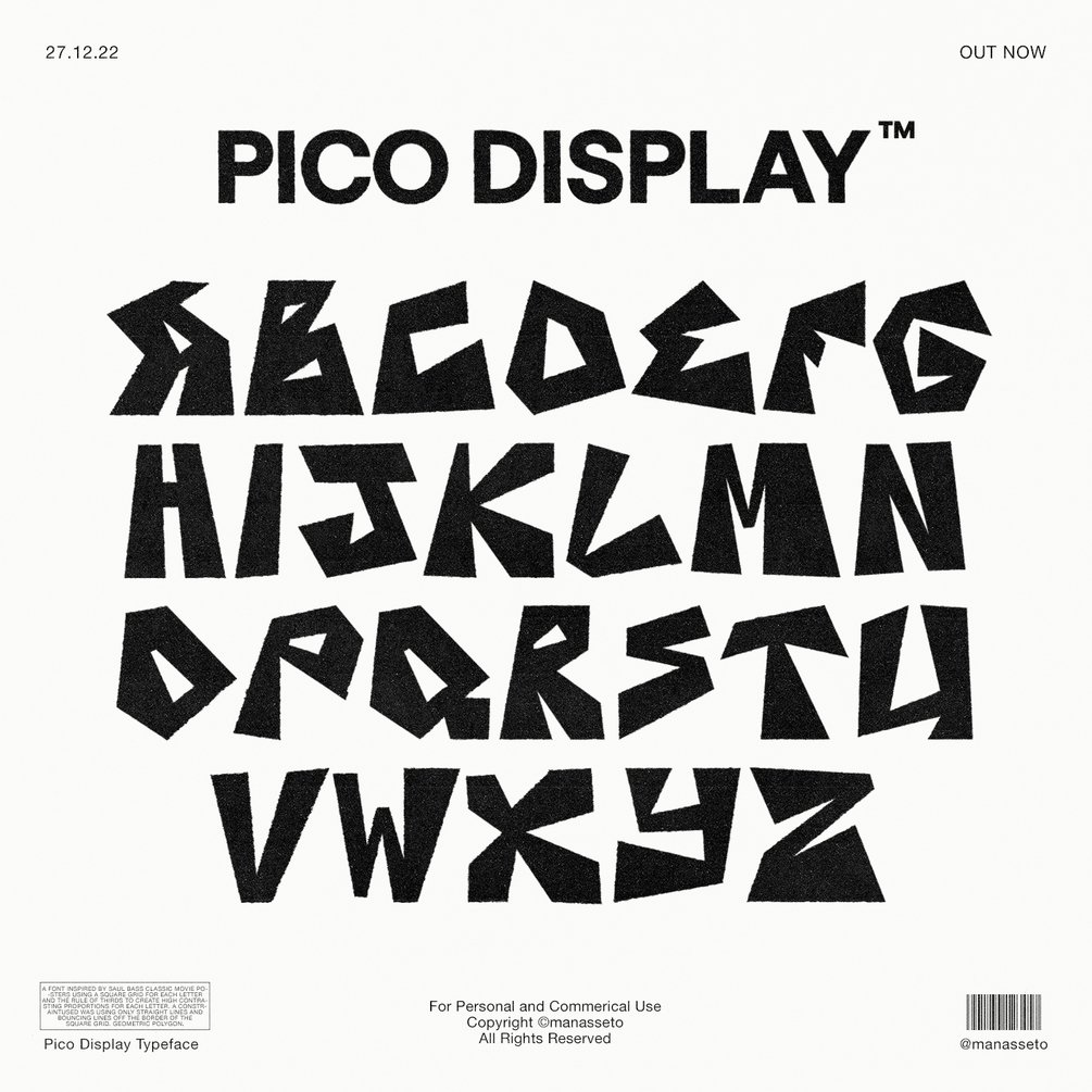 A display typeface inspired by Saul Bass' classic design work. It is made up of uneven lines that look chaotic yet have an underlying rule of thirds grid. Made up of simple timeless shapes that will not go out of style. This is a high contrast typeface that will definitely grab attention. It can be used for posters, clothing design, logos, magazines, etc...